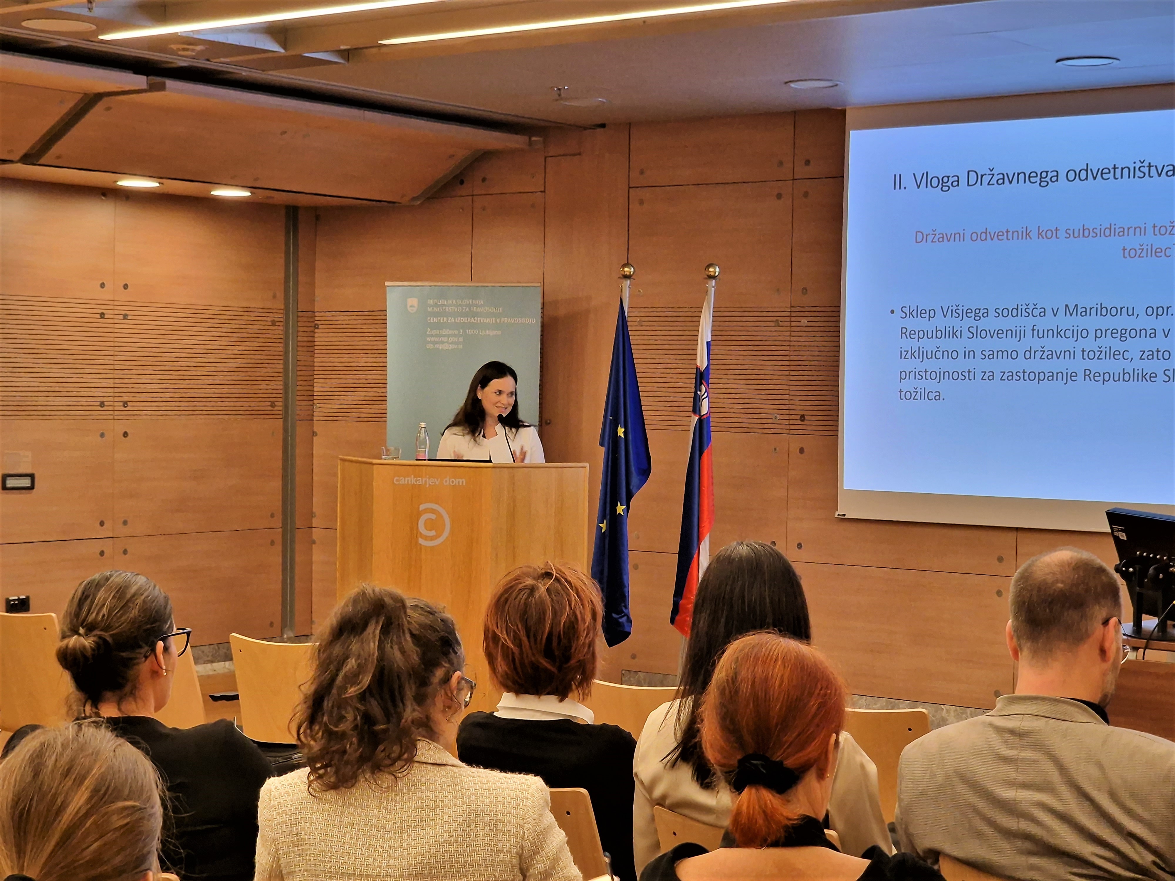 Udeležencem konference sta predstavili različne vidike sodelovanja med Državnim odvetništvom in državnimi tožilstvi s poudarkom na udeležbi Državnega odvetništva v kazenskih in z njimi povezanih izvršilnopravnih postopkih. Na koncu sta glede na veliko število odprtih vprašanj, ki vplivajo na učinkovito izvajanje pristojnosti obeh subjektov, predlagali tudi ustanovitev stalne delovne skupine, sestavljene iz predstavnikov obeh organov, in periodična srečanja, na katerih bi Državno odvetništvo in državna tožilstva obravnavali skupne vsebine s področja izvajanja pristojnosti in izmenjevali dobre prakse na področju poslovanja.