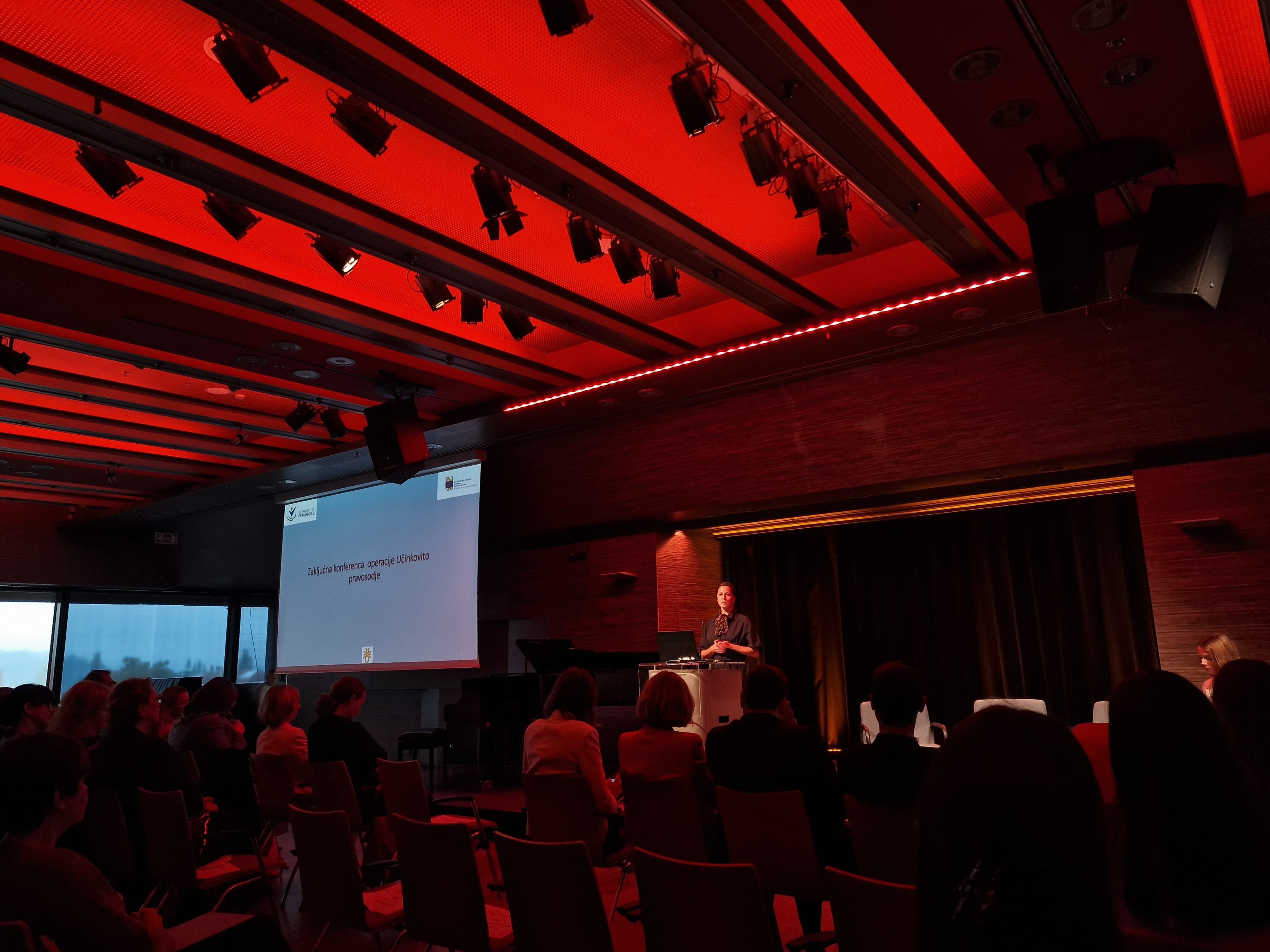V uvodnem nagovoru je državna sekretarka na Ministrstvu za pravosodje mag. Valerija Jelen Kosi poudarila, da je projekt povezal Ministrstvo za pravosodje, Ustavno in Vrhovno sodišče Republike Slovenije, Upravo za probacijo ter pomembne pravosodne stebre naše države: Vrhovno državno tožilstvo, Državno odvetništvo, Notarsko zbornico Slovenije, Zbornico izvršiteljev in številne druge. Ob zaključku konference je potekala tudi okrogla miza z naslovom »Prihodnost digitalne preobrazbe pravosodja,« na kateri so sodelovali predsednik notarske zbornice dr. Bojan Podgoršek, strokovnjak s področja digitalizacije pravosodja Primož Rojac in predstavnica vrhovnega državnega tožilstva Anita Veternik.